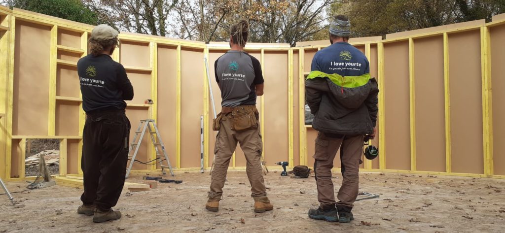 Dans le cadre du projet, montage d’une yourte contemporaine sur la parcelle de Bruyères-le-Châtel, avec I love yourte.